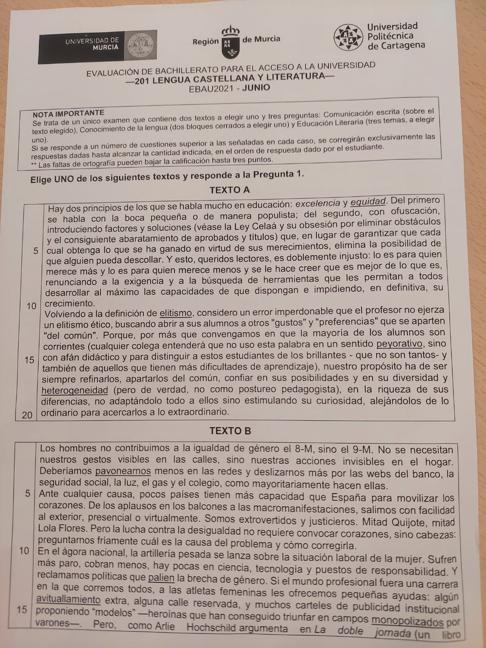 Examen-selectividad-EBAU-Lengua-Castellana-Canarias-2019-julio Buscar exámenes Todas las pruebas de acceso FP-ciclo medio FP-ciclo superior PAU extraordinaria ordinaria Pruebas acceso universidad mayores 25 años Pruebas acceso universidad mayores 45 años Pruebas libres obtención título ESO adultos. Evaluación de Bachillerato para el acceso a la Univ. Últimos exámenes de EBAU Selectividad PAU Región de Murcia. Com encontrarás exámenes desde 1996 hasta 2020 de 17 comunidades autónomas y 43. Exámenes 2021 Exámenes 2020 Exámenes 2019. Prueba de evaluación de bachillerato para el acceso a la universidad.